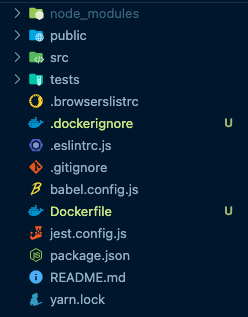 npx create-react-appoch för Vue börjar vi medvue create app .2. Vi skapar enDockerfile-fil i vår src-mapp. Dockerfile används för att visa Docker hur vi vill konfigurera vår Docker-miljö, man kan se det som ett specifikationsblad för allt vi behöver för vår applikation. - Vi skapar konfigurationen i vår Dockerfile